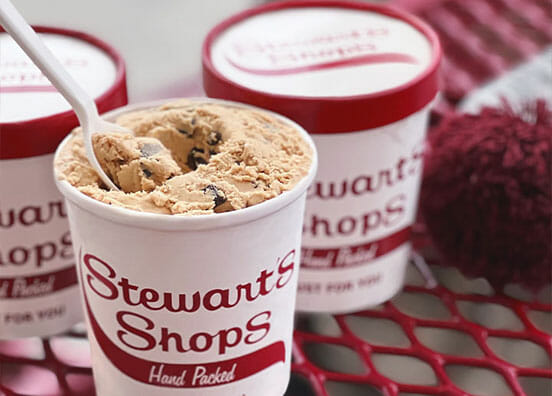Stewart's Shops offers a wide variety of locally made ice cream, sherbet, and frozen yogurt sherbet in prepackaged half gallons. You can get super rich ice cream, gelato, and non-dairy options in prepackaged pints. We also serve up delicious treats at our ice cream counter, with options like milkshakes, sundaes, ice cream cones, waffle cones, and refreshing dairy free fruit smoothies. Made with fresh milk from local farms, Stewart’s ice cream is a local favorite for all your sweet cravings, celebrations, and family outings.
